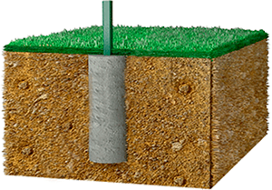 Крепление столбов на выбор заказчика: бутование, цементирование в яму или винтовая опора (закручивается в любой грунт). Выбор на стоимость не влияет. Столбы углубляются на 1,5 м. Цементирование самый надежный способ установки столбов в твердую почву. Для пучинистой почвы (глина, суглинок, песок) рекомендуется бутование. Винтовая опора подходит для любого грунта.
